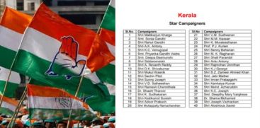 സീറ്റ് ലഭിക്കാതിരുന്ന ജോസഫ് വാഴക്കനും അലോഷ്യസ് സേവ്യറും താര പ്രചാരകരാകും. ദീപ്തി മേരി വർഗീസും ഷമാ മുഹമ്മദും പട്ടികയിൽ ഉണ്ട്.എ കെ ആന്റണി, ശശി തരൂർ, വി ഡി സതീശൻ , കെ സുധാകരൻ, അടൂർ പ്രകാശ്, എം എം ഹസൻ, കെ മുരളീധരൻ, എം എം ഹസൻ, രാജ്മോഹൻ ഉണ്ണിത്താൻ, ഷാഫി പറമ്പിൽ, ആന്റോ ആന്റണി, സണ്ണി ജോസഫ് എന്നിവരും പട്ടികയിൽ ഉണ്ട്.